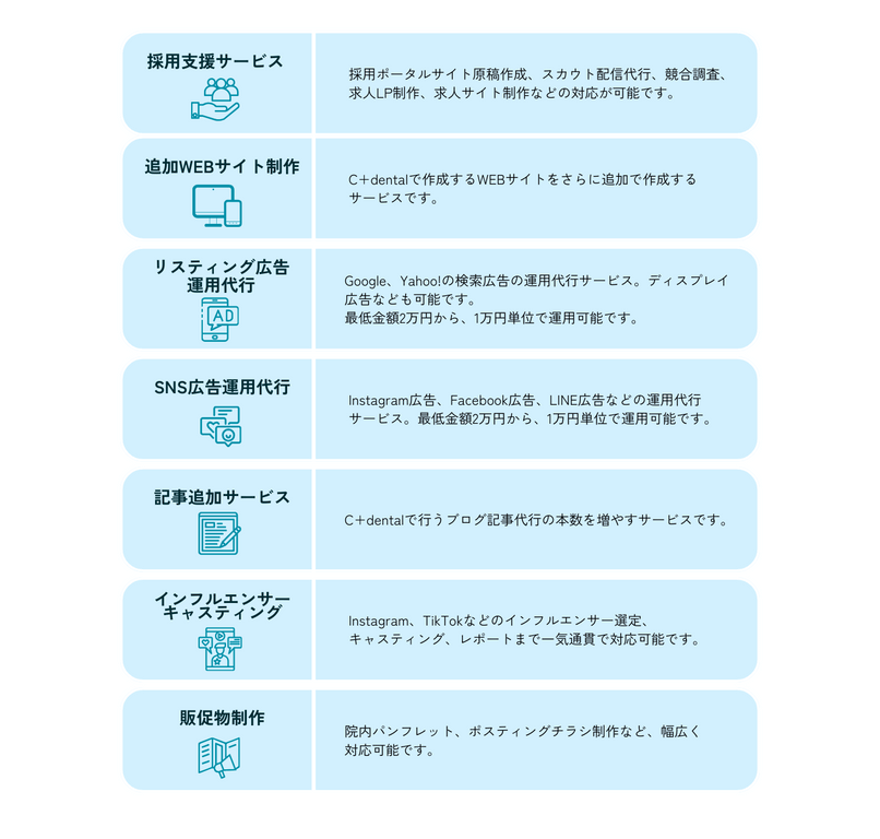 競合調査から採用条件のすり合わせ、採用ポータルサイト対策、スカウト配信、採用ランディングページの作成などを行っています。詳細はお気軽にお問い合わせください。